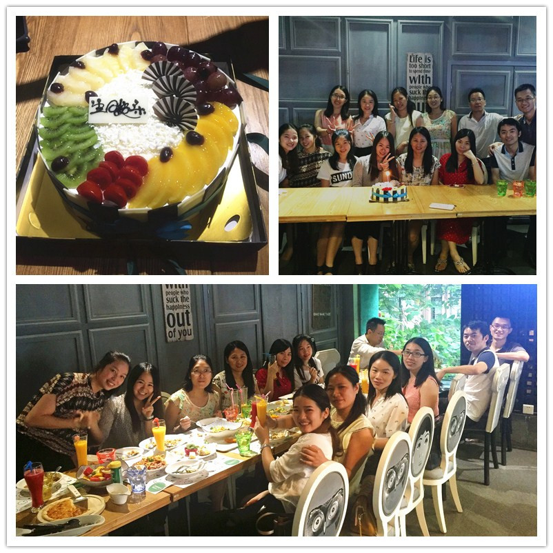 2016年7月22日晚,營銷中心第一、二季度員工生日會在綠茵閣餐廳舉行。生日會當(dāng)晚,壽星們少了平日的幾分忙碌,多了幾許濃濃的人情味,大家歡聚在一齊用餐,同時(shí)公司還為壽星們準(zhǔn)備了精美的小禮物。現(xiàn)場呈現(xiàn)一派歡樂祥和的氣氛,壽星一起許愿吹蠟燭,然后一起分享生日蛋糕的時(shí)候,生日會的氣氛推向了高潮。一張張燦爛的笑臉,一聲聲真誠的祝愿,一樣的生日聚會,每次都給“光華人”不同的感動!