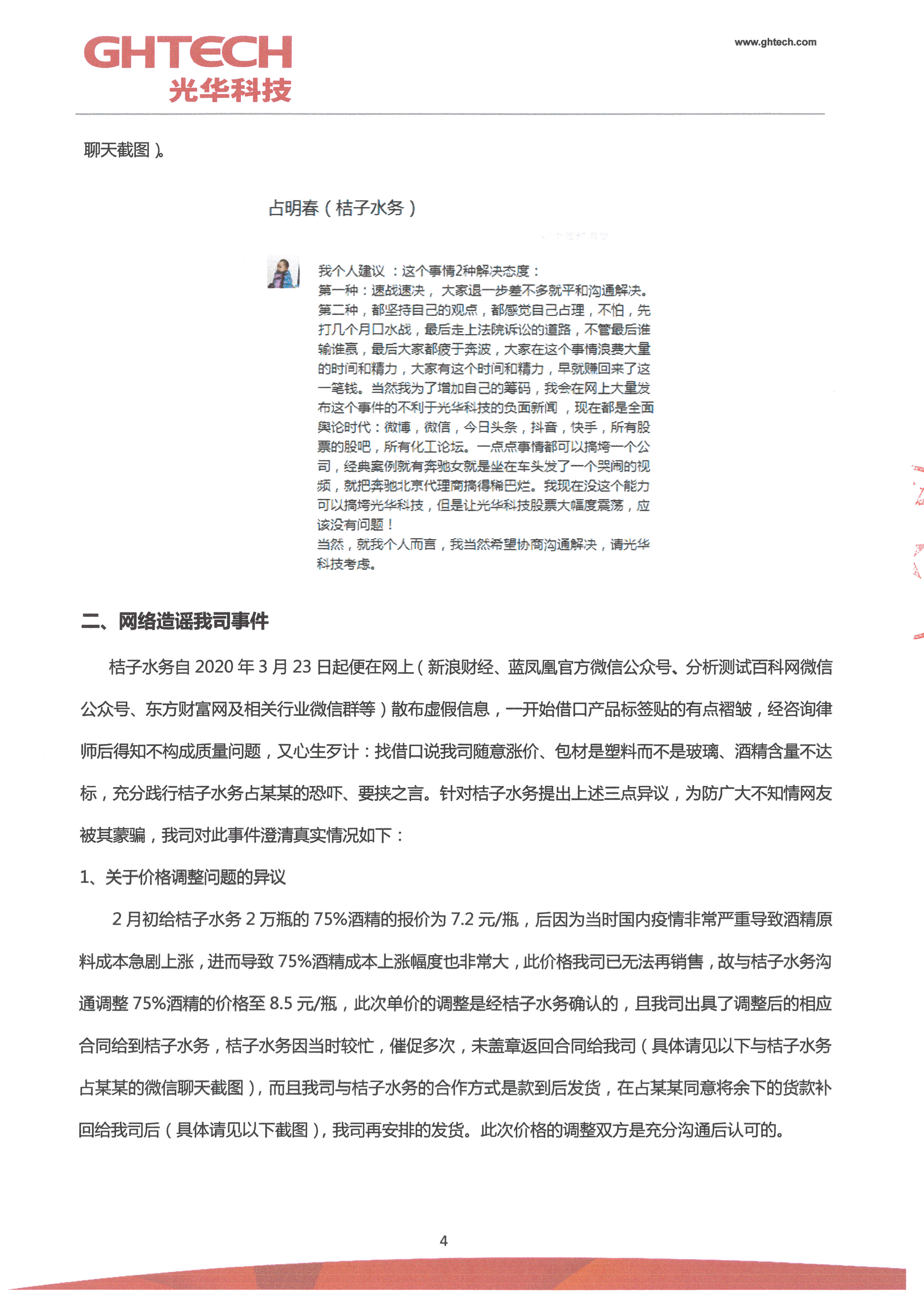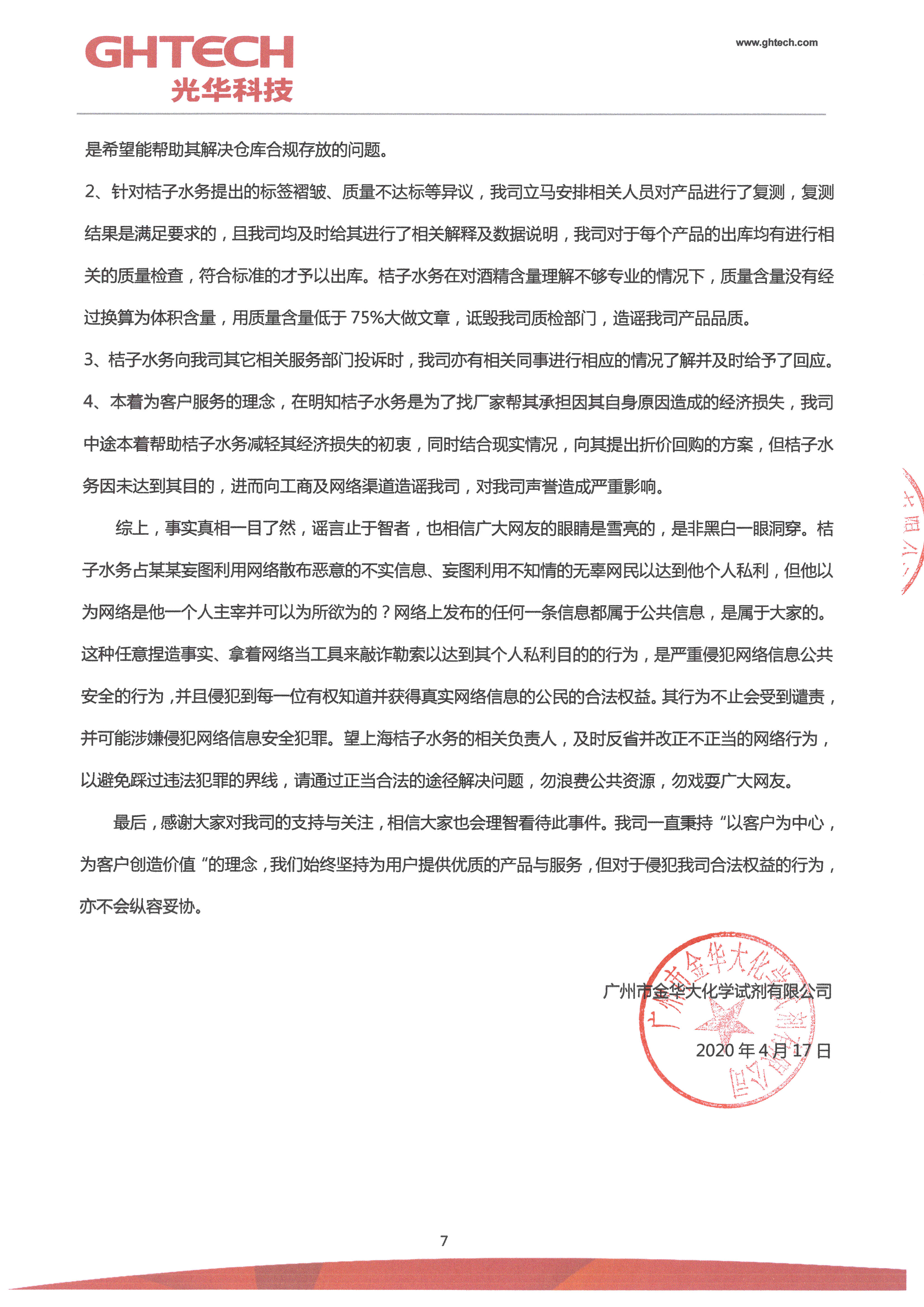 針對(duì)近期上海桔子水務(wù)網(wǎng)上造謠污蔑光華科技事件的聲明