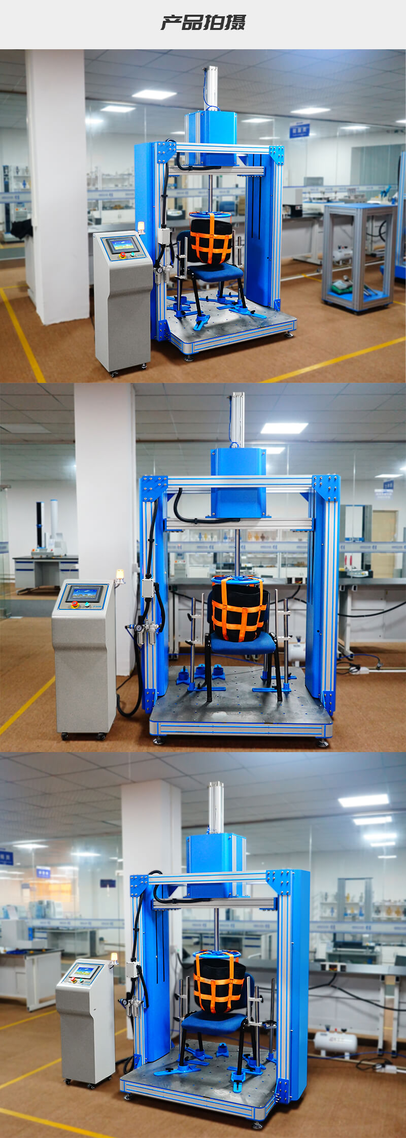 辦公椅跌落沖擊試驗儀適用于辦公椅、凳子等坐具類產品,在常溫下做自由落體沖擊和耐久沖擊等力學性能的測試,廣泛應用于辦公椅家具行業,評估椅面在垂直力作用下的一次沖擊和疲勞耐久能力,提高產品的品質。
