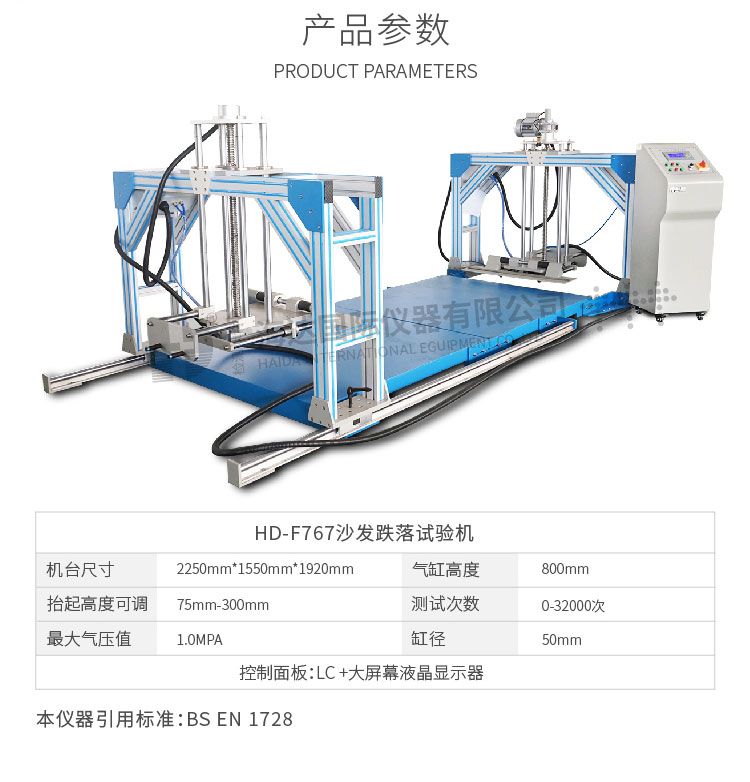 沙發(fā)跌落試驗(yàn)儀評(píng)估沙發(fā)跌落后木架是否損壞。