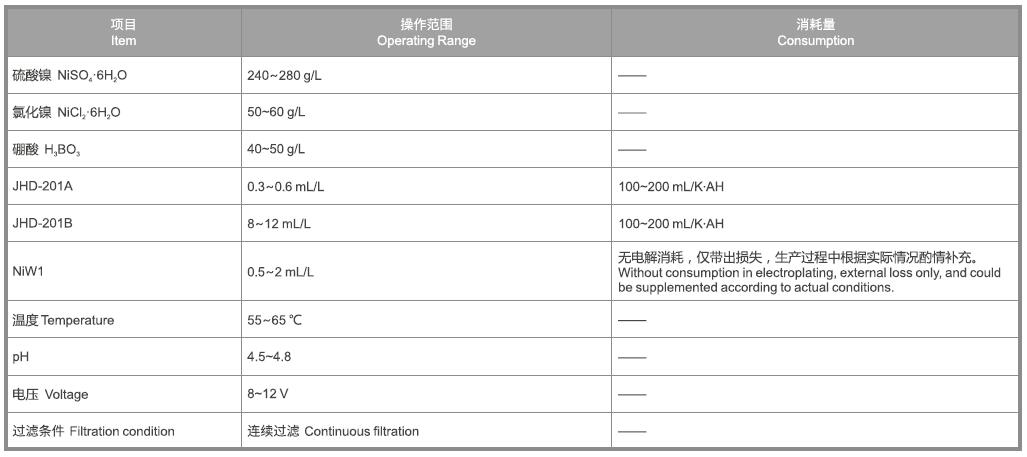 JHD-201A:俗稱光亮劑,負(fù)責(zé)出光和填平。201A不足時(shí),出光速度變慢;201A過(guò)量時(shí),低電流密度區(qū)發(fā)暗,鍍層脆性大