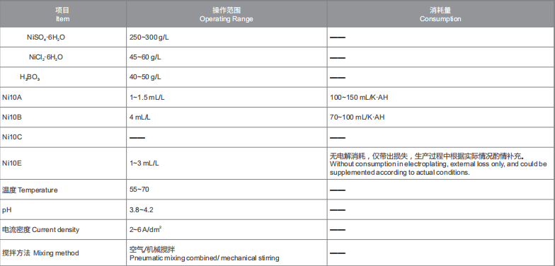 Ni10B :俗稱開缸劑,消除Ni10A產(chǎn)生的內(nèi)應(yīng)力,促進(jìn)金屬均勻分布;<br />